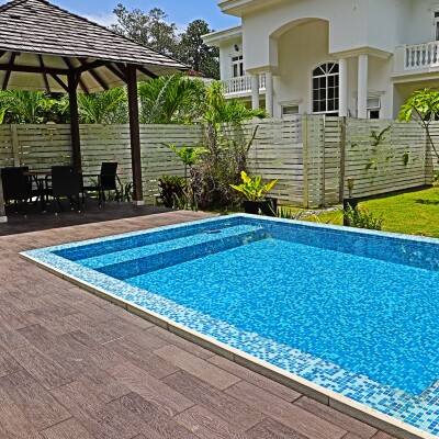 Dine under the stars in your outdoor gazebo and swim in your private plunge pool! The perfect place for families or groups, these well equipped villas have everything you need and more for a luxury stay right on the beach. Our gorgeous two bedroom villas feature two rooms with king size beds, each with ensuite marble bathrooms and private balconies. On the ground floor a well equipped kitchen has all you need for self catering. Bi-folding glass doors lead you from your comfy lounge room onto a gorgeous sun deck with plunge pool and gazebo for outdoor dining. There is a direct access to the beach, just 1 minutes walk from your villa and you are on the white sand of Beau Vallon. Free WIFI and free parking are included.